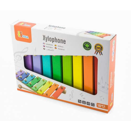 Barevný dřevěný xylofon je ideální hračkou pro začínající hudebníky.