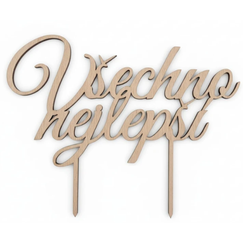 Elegantní dřevěný zápich „Všechno nejlepší“ o délce 20 cm dodá dortům a dezertům osobní a slavnostní nádech.
