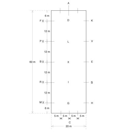 Sada 12-ti kuželů s písmeny pro drezurní obdélník. Kužely jsou vyrobeny z ABS plastu, který zaručuje vysokou odolnost vůči povětrnostním vlivům, UV záření, dlouhou životnost a minimální nároky na údržbu. Kužely je možné pro úsporu místa a přepravu stohovat. Potisk je vyrobený z polepové fólie. Sadu doporučujeme k produktu Drezurní obdélník 20 x 60 m - sada: 12 ks - barva: bílá - potisk: černý, 16 x 14 cm - materiál: ABS plast - výška: 47 cm - délka strany: 43 cm - hmotnost: cca 0,8 kg - průměr horního otvoru: 5 cm - rozměry ve složeném stavu: 75 x 45 x 45 cm