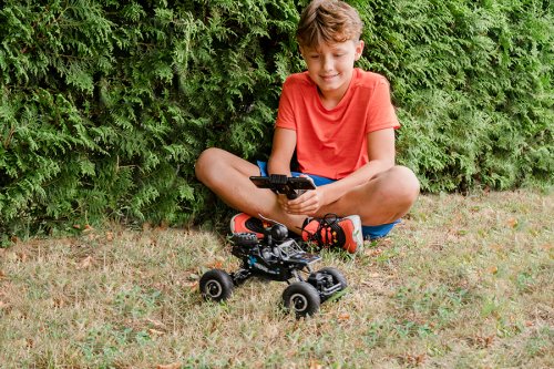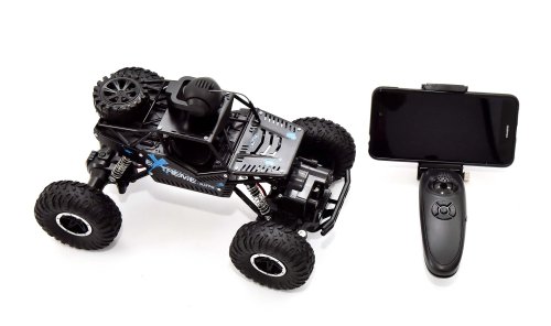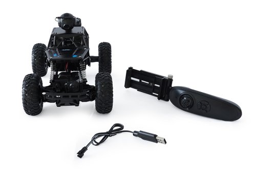Auto na dálkové ovládání, které jezdí všemi směry a zvládne i těžší terén. Navíc si můžeš mobil upevnit na dálkový ovladač a nainstalovat aplikaci LH CAR, pomocí které můžeš auto řídit nebo natáčet videa. Aplikaci stáhneš na Google play nebo App store. Auto můžeš řídit buď mobilním telefonem nebo ovladačem. Provoz auta na bateriový pack (součást balení) - nabíjení 2,5 hodiny, doba jízdy 20 minut. Při nabíjení svítí na nabíječce červená kontrolka, když je auto nabité svítí tmavě červeně. Dálkový ovladač provoz na 2x1,5V baterie typu AA (nejsou součást balení)