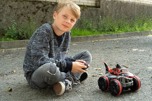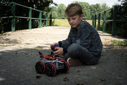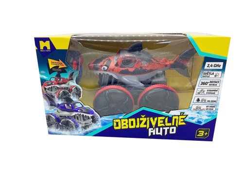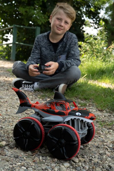 Auto na dálkové ovládání, které jezdí nejen po zemi, ale i po vodě. Ani neupravený terén mu nedělá problémy. Auto jezdí všemi směry a při jízdě mu barevně svítí kabina. Zadní ploutev se při jízdě ve vodě hýbe a vypadá to jako, když plave žralok. Nabíjení cca 4 hodiny, doba jízdy cca 20 minut. frekvence 2,4 Ghz. Auto dokáže stoupat až 45 stupňů. Umí rotace 360 stupňů na místě.