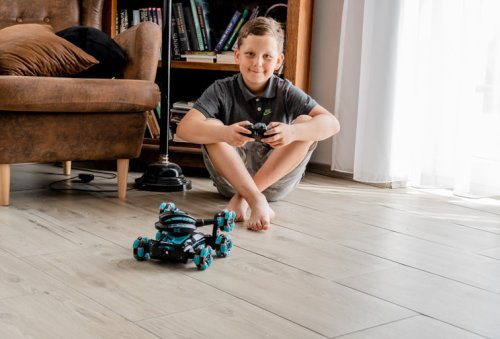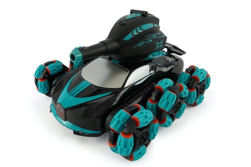 6ti kolé auto na dálkové ovládání, které střílí malé plastové kuličky. Jízda dopředu, dozadu a do stran. Kola auta se dají zvedat a různě natáčet, že může jet jenom po 4 kolech. Auto má funkci kouře z výfuku (nalitím vody na horní straně auta). Auto hraje různé melodie a svítí. Ovládá se pomocí klasického ovladače nebo ovladače na ruku. Nabíjení na USB kabel. Doba nabíjení 2 hodiny, doba jízdy cca 30 min. Frekvence 2,4 GHz.