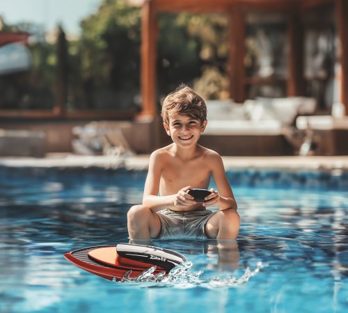 Moderní RC loď na dálkové ovládání, která jezdí všemi směry. Pomocí tlačítka pro zrychlení, dokáže na pár vteřin vyvinout větší rychlost. Senzor na vodu zaručí spuštění pouze při ponoření do vody. Dosah ovladače 10-15 m. Dobíjení na USB kabel. Doba dobíjení 25-30 minut. Doba jízdy 8-12 minut.