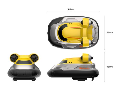 Moderní vznášedlo na dálkové ovládání, která jezdí všemi směry. Pomocí tlačítka pro zrychlení, dokáže na pár vteřin vyvinout větší rychlost. Senzor na vodu zaručí spuštění pouze při ponoření do vody. Dosah ovladače 10-15 m. Dobíjení na USB kabel. Doba dobíjení 25-30 minut. Doba jízdy 8-12 minut.
