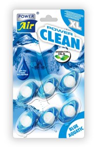 WC blok POWER AIR Power Clean s aktivní pěnou čistí záchodovou mísu, působí proti vodnímu kameni a naplňuje WC místnost příjemnou vůní.