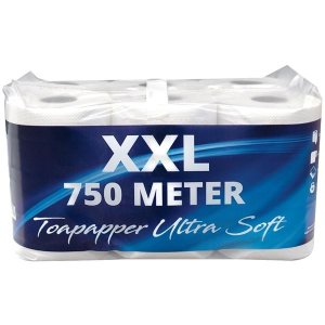 Dvouvrstvý Jumbo toaletní papír s ražbou vyrobený z 100% celulózy Výška role 9 cm Průměr role 28 cm Návin role 250 m Velikost útržku 24x9 cm Průměr dutinky 6 cm Balení obsahuje 6 rolí Výrobek pasuje …