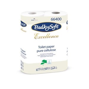 Toaletní papír Bulkysoft - excellence, 4vrstvý, 6 rolí Materiál: 100% celulóza Počet vrstev: 4 vrstvý Barva: super bílá Počet útržků: 150 útržků Šíře role: 9,5 cm Délka role: 20,25 m Balení: 6 rolí