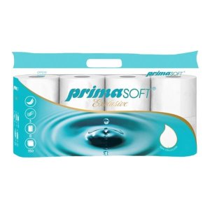 Toaletní papír PrimaSOFT- 2vrstvý, extra bílý 100% celulóza Návin 17,55 m Rozměr útržku 9x11,7 cm Průměr dutinky 4,7 cm Průměr role 9 cm Výška role 11,5 cm Počet útržků 150 Počet rolí 8