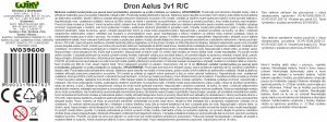 Dron Aelus 3v1 RC na dálkové ovládání. Bez kamery. 3 módy - létání, jízda na vodě, jízda po pevném povrchu. Rozměry 18x18x9 cm. 3.7V 450mAh bateriový pack do dronu součástí, 3xAAA do ovladače nejsou součástí. USB kabel součástí. Provoz 7 min, nabíjení 60 min, dosah ovladače 80-100 m. Funkce - pohyb na místě, obrat o 360 stupňů, návrat do výchozí polohy. Přepínač ON/OFF na ovladači.