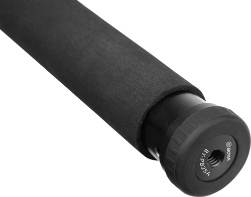 Boom pole Boya BY-PB25A je vybavený nejuniverzálnějším závitem 1/4″, ale balení obsahuje také 3/8″ a 5/8″ adaptéry pro zajištění kompatibility se širokou škálou úchytů. Tato teleskopická tyč je vyrobená z vysoce kvalitního hliníku, je ergonomicky tvarovaná a má karabinu Twist-Lock s automatickou pojistkou zámku pro bezpečné zavěšení i neoprenem změkčenou rukojeť pro větší komfort při práci v terénu.
