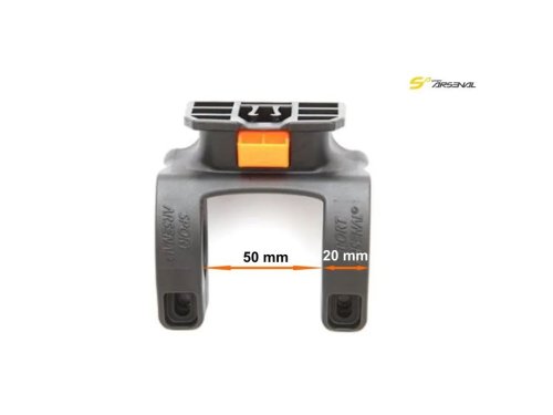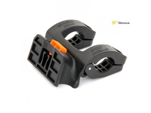 plastový držák je určen pro brašny art. 445, 510, 310 lze montovat na průměry řídítek 25,4–31,8 mm bezpečnostní lanko zabraňuje protáčení držáku kolem řídítek