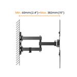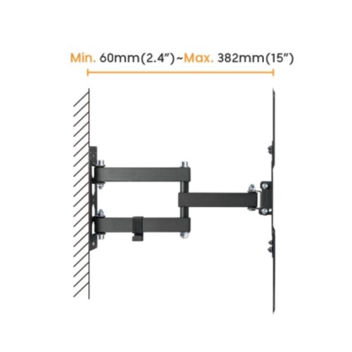 Držák je určený pro jeden plochý televizor s úhlopříčkou od 23" do 55". Odolné ocelové rameno unese hmotnost až 30 kg. Výsuvné rameno vám umožní nastavení vzdálenosti od 60 do 382 mm, naklopení nahoru a dolů nebo natočení do stran. Obrazovku tak můžete sledovat z různých míst.