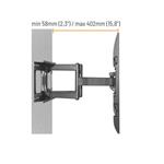 Držák je určený pro jeden plochý televizor s úhlopříčkou od 37" do 80". Odolné ocelové rameno unese hmotnost až 60 kg. Výsuvné rameno vám umožní nastavení vzdálenosti od 58 do 402 mm, naklopení nahoru a dolů, rotaci nebo natočení do stran. Obrazovku tak můžete sledovat z různých míst.