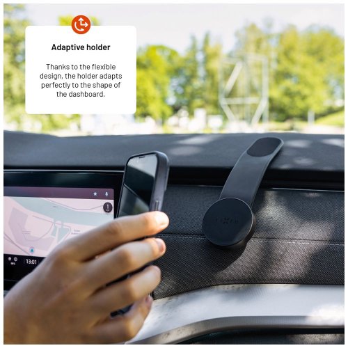Držák je kompatibilní s iPhony řady 12 a vyšší. Telefon upevníte do kruhové hlavy držáku a o jeho bezpečné uchycení se postará hned 17 integrovaných magnetů MagSafe. Ty zaručují potřebnou stabilitu i během otřesů. Displej si můžete navíc libovolně otáčet do svislé či vodorovné polohy. Pokud vlastníte telefon bez systému MagSafe, použijte lepicí magnetický kroužek, který najdete v balení.