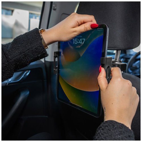 Díky kvalitnímu zpracování se tento nastavitelný držák přizpůsobí jakékoliv opěrce hlavy. Boční kleště se dokonale přizpůsobí vloženému tabletu. Držák ovšem můžete využít i pro svůj smartphone. Navíc je vybavený výřezy pro neustálý přístup k nabíjecím konektorům. Umístěné zařízení zůstane v bezpečí. Silikonové polstrování ho totiž chrání před poškozením.