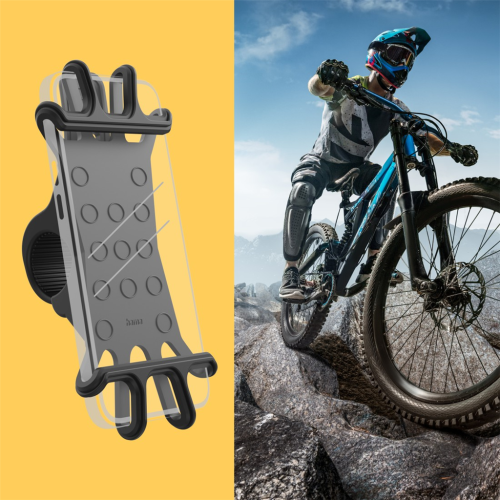 Držáka Hama je skvělou volbou pro bezpečné uchycení mobilu při každé jízdě. Držák na řídítka je ideálním řešením pro cyklisty, kteří chtějí mít telefon neustále na očích. Můžete jej použít pro mobilní zařízení o šířce 6–8 cm a výšce 13–15 cm. Díky pružné silikonové konstrukci tlumí nárazy a drží telefon pevně na místě i na nerovném povrchu.