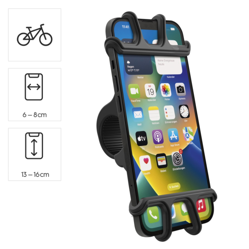 Držák Hama snadno a bezpečně upevníte na řídítka kola nebo elektrokola během několika sekund. Díky elastickému silikonovému uchycení se vždy přizpůsobí tvaru mobilního zařízení a zároveň ho chrání před vibracemi. Držák je Ideálním řešením pro každodenní využití i výlety do terénu.