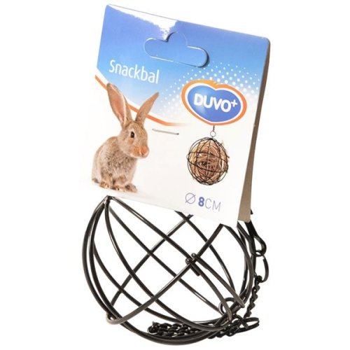 Zásobník na seno, zeleninu nebo další pamlsky k zavěšení do klece s otvíráním pro jednouché plnění. Krmítko je vyrobeno z pevných drátů a ošetřen kvalitní nezávadnou barvou. Průměr koule 8 cm.