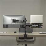 Držák se vyrábí z kvalitní oceli, proto je velmi pevný a odolný. Uchycení monitoru je bezpečné a stabilní. V balení se nachází spony, které vám umožní přehlednou organizaci vedení kabelů, a průchodky a svorky pro instalaci téměř na jakoukoliv pracovní plochu.