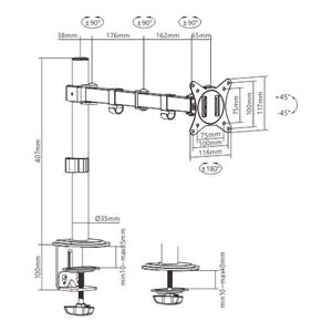 Držák monitoru na stůl GEMBIRD MA-D1-01, naklápěcí, až do 32” a 9kg, černý