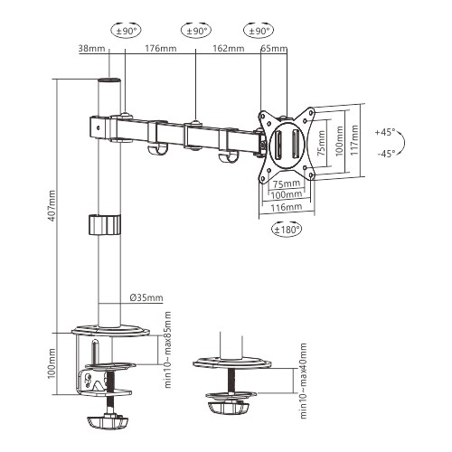 Rameno umožňuje otáčet, vysouvat, zatahovat nebo naklánět váš displej a umožňuje otočení displeje z režimu na šířku do režimu na výšku atd.