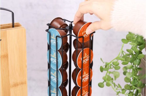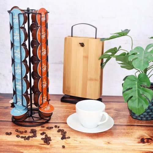 Tento stylový držák na kapsle je navržen tak, aby udržoval různé kávové příchutě pečlivě uspořádané. Může pojmout až 28 kávových kapslí a má chromovaný design, který ladí s každým kuchyňským dekorem. Kompaktní a otáčecí design jej činí vhodným pro umístění na pracovní desce nebo stole. Zde jsou klíčové specifikace:Barva: ČernáMateriál: KovRozměry:Šířka: 15 cmDélka: 12 cmHmotnost: 1 kgKompatibilní s: Kapsle Dolce GustoPokud hledáte alternativu k původnímu držáku na kapsle Dolce Gusto, může to být dobrá volba. Celkově jde o elegantní a funkční doplněk pro milovníky kávy!