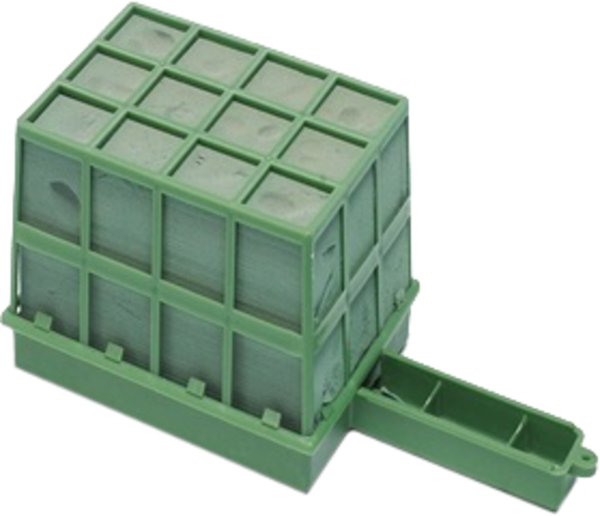 Aranžovací hmota vysoké kvality pro živé rostliny v plastovém držáku s úchyty a mřížkou.