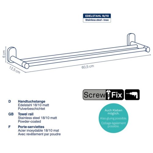 Nerezová ocel 18/10 práškově lakovaná matná 2 tyče 60,5x12,5cm 6cm v