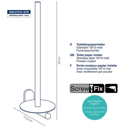 Nerezová ocel 18/10 práškově lakovaná matná pro 3 role 15,5x12cm 38cm v