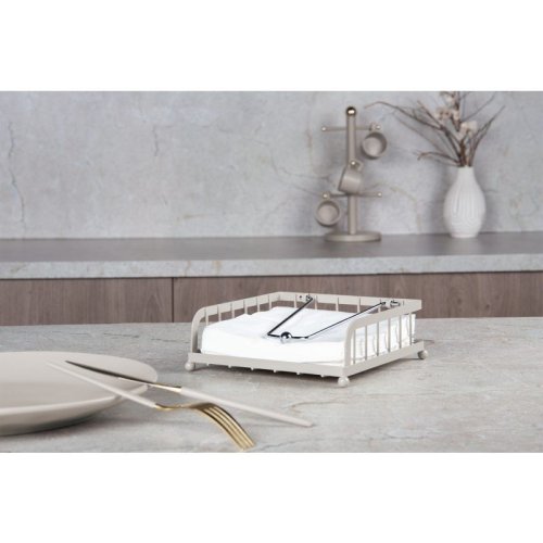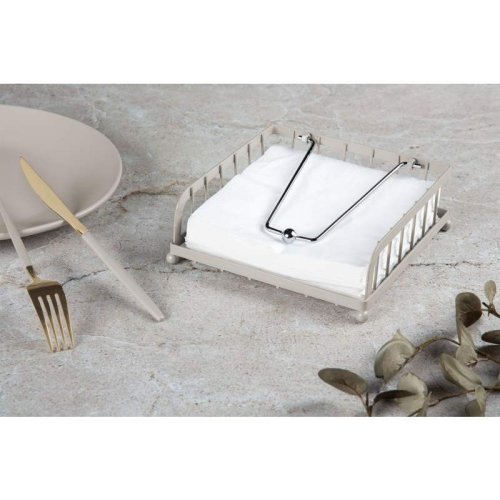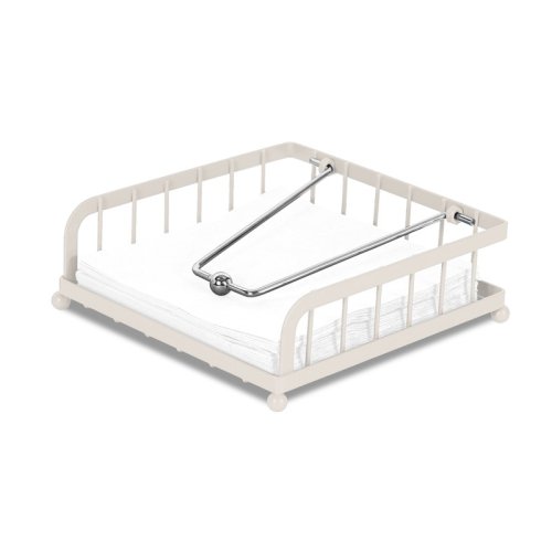 ocelový držák na ubrousky z kolekce Sahara Collection - chromovaná úprava povrchu v matné krémové sahara barvě - díky polohovací kuličce ubrousky drží na místě a pohodlně se vytahují - tradiční doplněk do kuchyně a k jídelnímu stolu v atraktivním provedení - rozměry: 18,5 x 18,5 x 6,2 cm