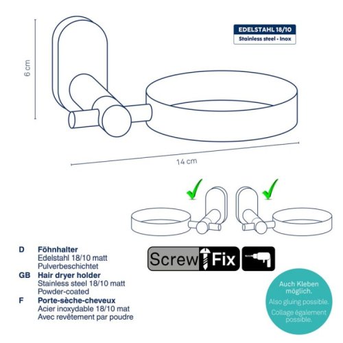 Držák na vysoušeč vlasů ALESSIO nerez 18/10 černý 14,0x11,0x6,0cm 9,0cm KL-22756