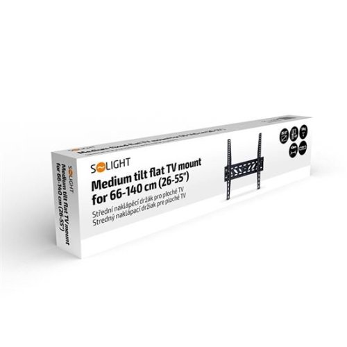 Univerzální naklápěcí držák je ideální pro všechny ploché TV s úhlopříčkou 66–140 cm (26"–55"). Bezpečně televizi uchytí a umožní její naklopení až o -12° pro optimální pozorovací úhel. Díky pevné konstrukci s nosností až 50 kg stabilně upevníte zařízení na stěnu.