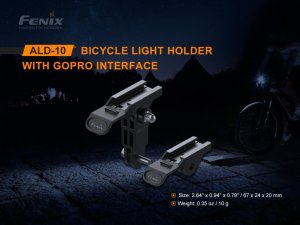 Adaptér Fenix ALD-10 slouží k uchycení světel na kolo Fenix do GoPro montáží. Pokud již tedy používáte GoPro montáž na řídítkách, přilbě či jinde, tak díky redukci Fenix ALD-10 můžete nyní v těchto montážích používat i cyklosvítilny Fenix.