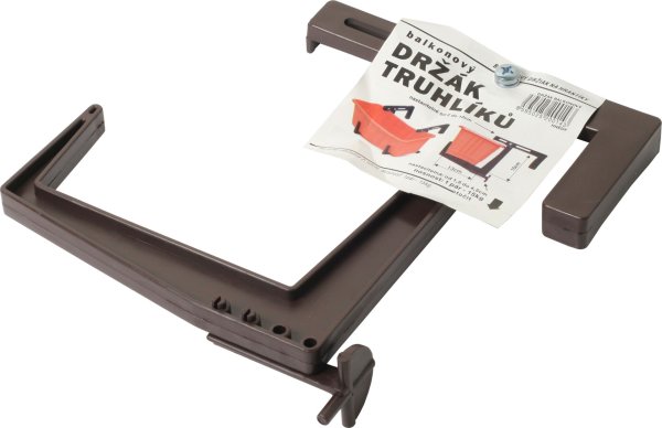 Balkónový držák je vhodný na menší truhlíky. Je odolný vůči mrazu a slunečnímu záření. Je určen pro zábradlí o šířce 2-12 cm. Nosnost jednoho páru: 15 kg. Barva: hnědá.