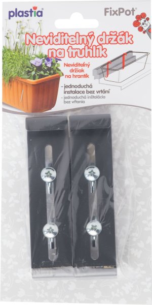 Umožňuje neviditelné uchycení truhlíku na parapetu bez vrtání do fasády. Zabraňuje spadnutí truhlíku při jeho přetížení nebo při špatných klimatických podmínkách. Držák je možné použít u většiny plastových oken. Držák Fixpot je určen pro výšku truhlíku 10 - 19 cm a pro délku do 60 cm, je-li délka více než 60 cm, použijte další držá k.