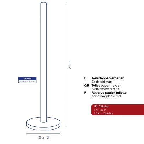 -Série: Carta-Materiál: nerezová ocel-Povrch: matný-Výška: 37 cm-Průměr: 15 cm-Kapacita: 3 role