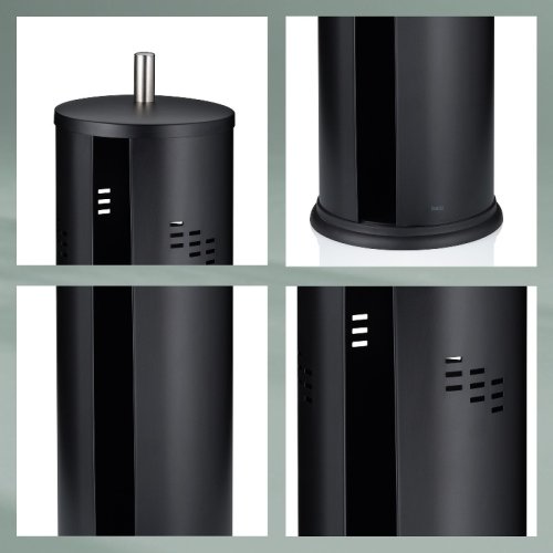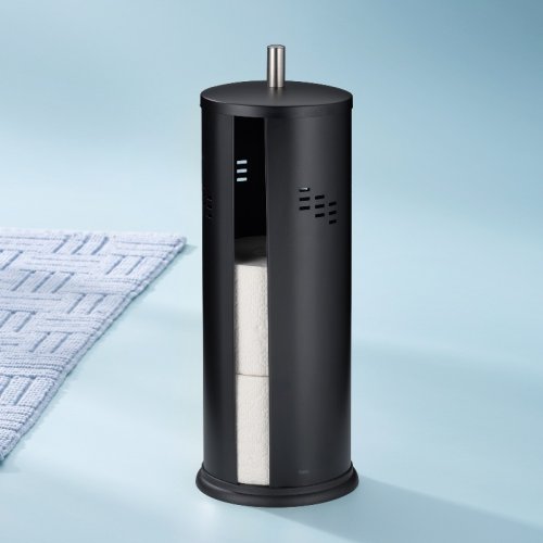 Zásobník na toaletní papír ze série SWING je vyroben z nerezové broušené nerezové oceli matného vzhledu a zdobený vzorem po celém obvodu otvorů. V zásobníku lze uložit až tři role toaletního papíru. Díky bočnímu otevírání nádoby lze každou roli snadno vyjmout nebo znovu naplnit. Nádoba na toaletní papír má víko, které ji chrání před nečistotami a vlhkostí. Gumový povlak na dně dodává nádobě potřebnou stabilitu a také ji chrání před poškrábáním.