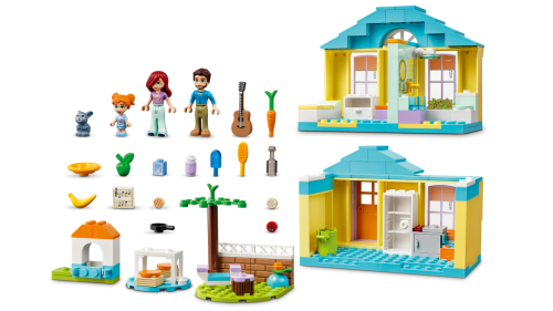 V domu Paisley od LEGO® Friends (41724) budou mít mladí stavitelé od 4 let stále co prozkoumávat. V horním patře je ložnice a koupelna, ale lze jej sundat, aby bylo snazší hrát si i v kuchyni dole. Nechybí spousta doplňků pro hraní příběhů, včetně dobrůtek a ovoce, venkovního stolu a koše na třídění odpadků. V zahradě má Paisley útulný koutek, kde hrává na kytaru a píše písničky. Společnost jí dělá králíček, pro kterého má nachystanou mrkvičku.