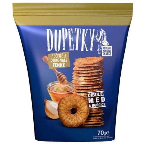 Bezkonkurenčně nejtenčí dozlatova upečená a lahodně křupavá kolečka Občerstvení pro každou příležitost s nízkým obsahem tuku Unikátní příchuť hořčice-med-cibulka Hmotnost: 80 g
