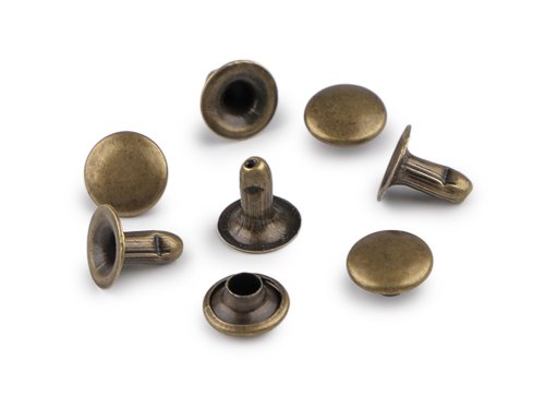 Kovový nýt se skládá ze dvou částí. K jeho aplikaci je potřeba piston, který najdete pod kódem 630532 a lis, který najdete pod kódem 070241 nebo 790770. Nýty můžete použít k výrobě kabelek, opasků, peněženek atd. Neslouží pouze jako ozdoba, ale jedná se o nýty, kterými upevníte vrstvy materiálu k sobě.