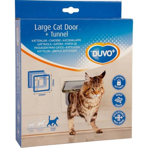 Průhledná kočičí dvířka DUVO+ s bílým rámem umožňují čtyři různá nastavení: 1) zavřená v obou směrech, 2) otevřená v obou směrech, 3) průchozí pouze dovnitř nebo 4) průchozí pouze ven. Jsou vyrobená z plastu odolného vůči povětrnostním vlivům a díky těsnicímu kartáčovému lemu a samozavírání na magnet udrží váš dům bez průvanu. Dvířka mají nastavitelnou hloubku – jsou vhodná pro dveře a stěny o tloušťce do 50 mm. Součástí balení je i papírová šablona pro snadnější instalaci: šablonu jednoduše obkreslete na dveře nebo stěnu a podle vyznačené čáry vyřízněte otvor. Upozornění: Předem se ujistěte, že rozměry dvířek jsou vhodné pro vaši kočku. Tento model je dimenzovaný pro větší kočky. Hlavní přednosti: