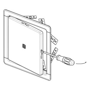 INSTALACE: Rámeček dvířek je vybaven děrovanými montážními pásky, za které je po jejich ohnutí možno instalovat do stavebního otvoru pomocí vrutů, tmelů, sádry apod. Dvířka se uzavírají lehkým zatlačením do rámečku, otevírají se pomocí plochého šroubováku, kterým zapáčíme po vložení do mezery mezi dvířky a rámečkem v místě kteréhokoliv zářezu v boku dvířek.