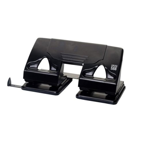 Celokovová dvojděrovačka SAX 588 proděraví list čtyřmi otvory Odřezky jsou shromažďovány ve dvou plastových odklopných dnech Příložník na klasické formáty A4, A5 a A6 Rozteč otvorů jednoděrovačky: 8 …