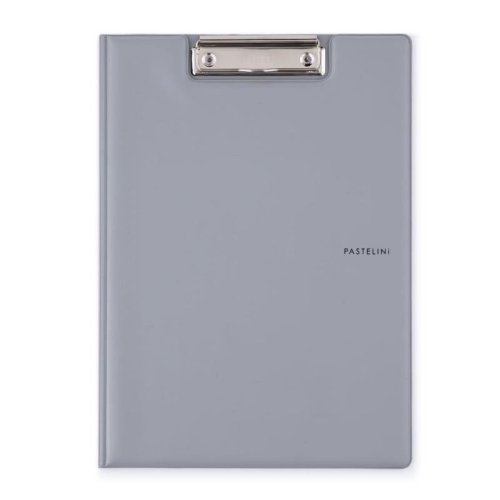 Uzavíratelná psací podložka s kovovým klipem, vyrobena z extra pevné lepenky. Vnitřní průhledná kapsa. Moderní pastelové barvy.