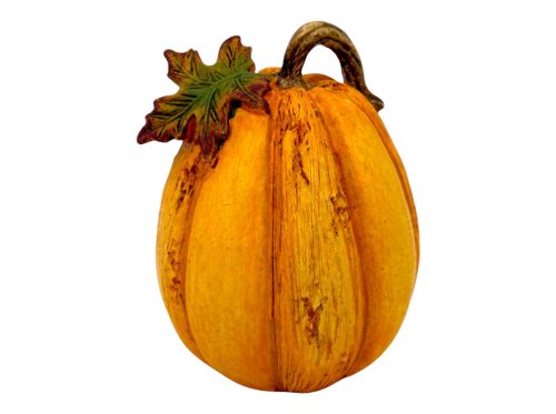 Polyresinová dýně o rozměru 82 × 105 mm s lístkem je ideální pro podzimní dekorace a aranžmá. Odolný materiál zajišťuje dlouhou životnost a dekorace je vhodná pro stolní aranžmá, parapet nebo samostatné vystavení.