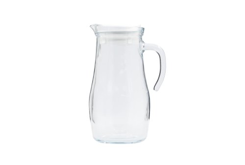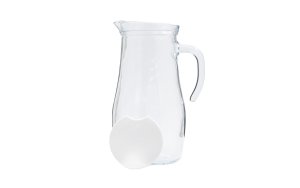 Džbán je vyroben z běžného stolního skla, není určen pro vroucí vodu. Skleněný džbán s plastovým víčkem a skleněnou rukojetí pro lepší úchop.