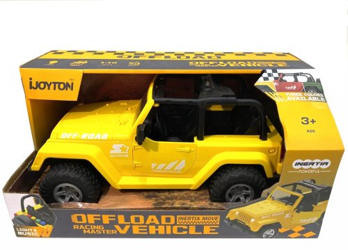 Džíp v měřítku 1:10 představuje detailně propracovaný model terénního vozidla, který je k dispozici ve třech barevných variantách – červené, žluté a khaki zelené. Vozidlo je navrženo s důrazem na realismus, což dokládají otevírací dveře, robustní konstrukce a výrazné terénní pneumatiky, které podtrhují jeho off-road charakter. Interiér džípu je černý a detailně zpracovaný, doplněný o volant a sedadla, což přispívá k celkovému dojmu skutečného terénního auta.