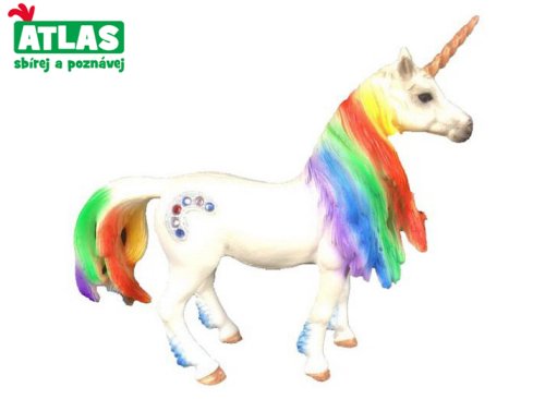 Figurka Jednorožec s duhovou hřívou. Velikost 13 cm. Přesné rozměry 12,8x3,7x12,3 cm.