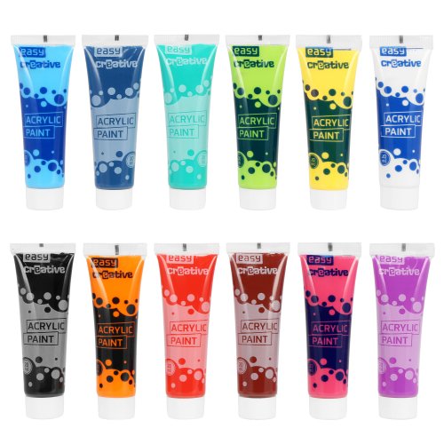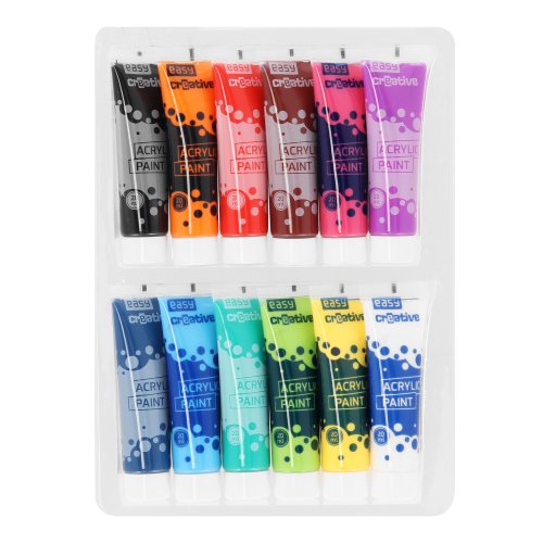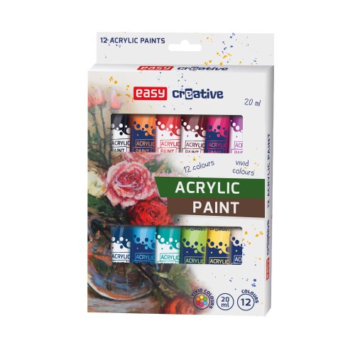 Akrylové barvy mohou používat i děti. Jsou vyráběny na bázi vody, akrylové pryskyřice a pigmentu, takže jsou netoxické. Balení akrylových barev Easy Creative obsahuje 12 intenzivních barev. Krémová konzistence a vysoce kvalitní pigmenty zaručují snadnou aplikaci a velmi dobré krytí malovaných ploch. Díla vytvořená těmito barvami mají živé a trvanlivé barvy.