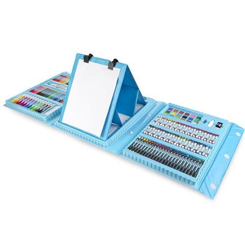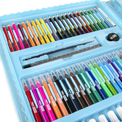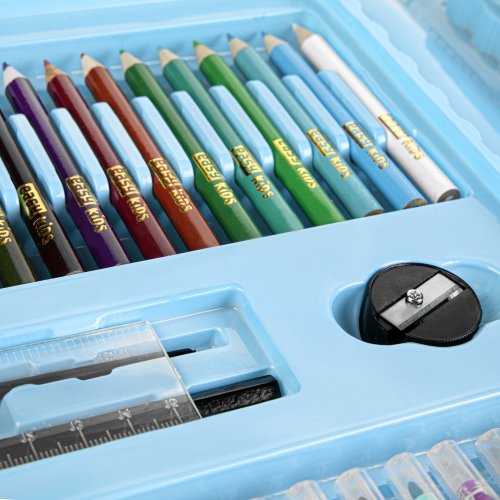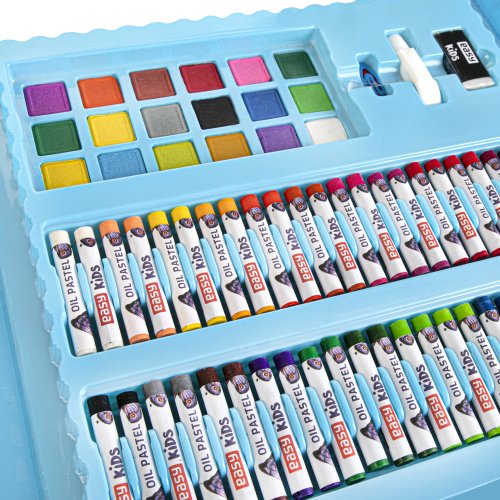 Tato sada je snem každého malého umělce. Modrý kufřík se stojanem ukrývá 208 kusů výtvarných potřeb, se kterými se váš syn, vnuk nebo synovec ponoří do světa fantazie a barev.
